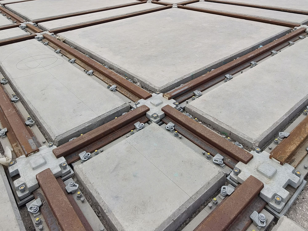 The crossover forging assembly is designed to tightly integrate the ends of rails from four directions into a single unit. It is securely fastened to the concrete ground using four high-strength anchor bolts, custom-made soleplates, and rubber pads, effectively preventing displacement caused by vibration or external forces.